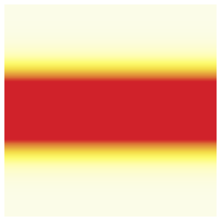 Well, this is a two-dimensional simulation. What does that actually mean? It means that everything is assumed to be infinite along the third dimension. So our gaussian source isn't really gaussian, it's Gaussian along one dimension and infinite along the other. If we were to plot its cross section (imagine looking head-on at the beam from the direction it is propagating) it would look something like this: